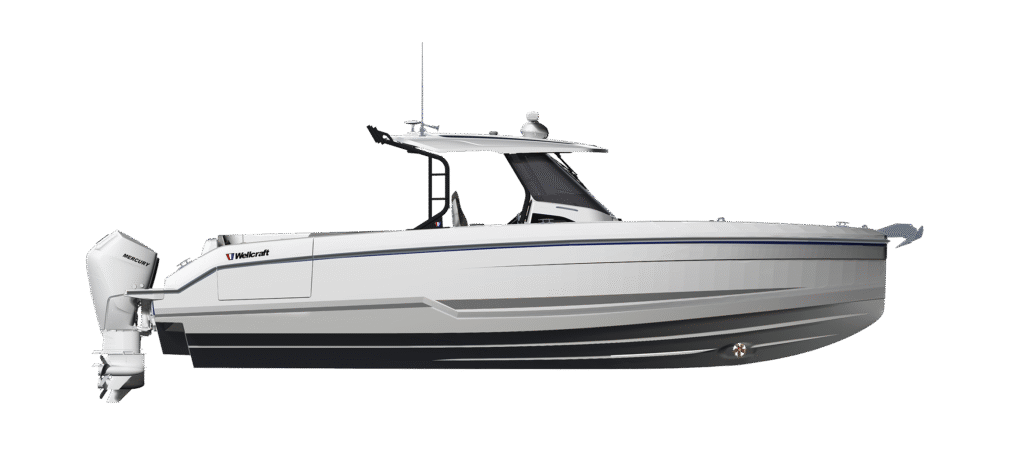 Con 38’4” (11.69 m) de eslora, el Wellcraft 38 T-Top cuenta con una capacidad de asiento sin igual, mientras que la innovadora plataforma de baño ofrece un acceso al agua inigualable.
