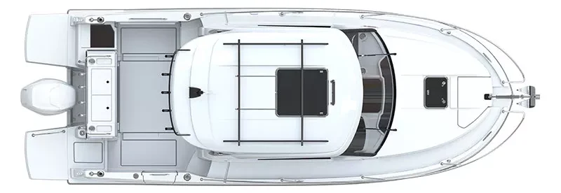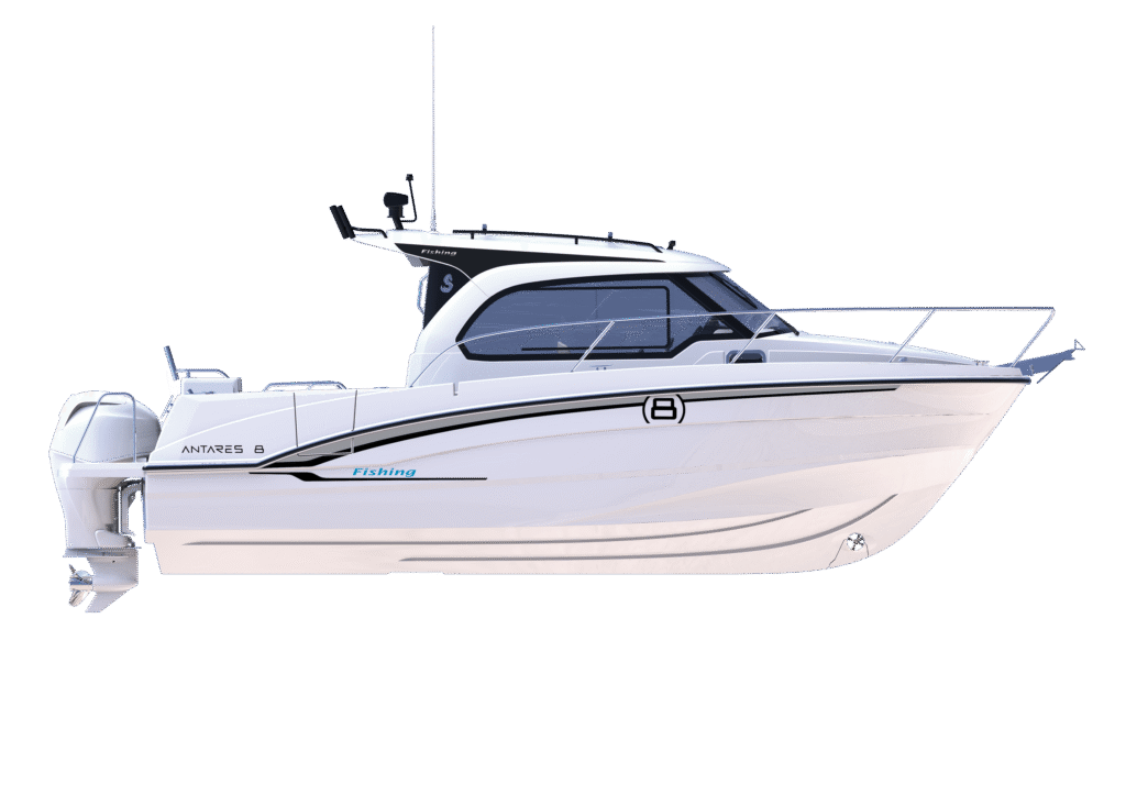 the Antares 8 Fishing adopts a sportier look than the Antares 8 Cruising and benefits from specific equipment for fishermen. Its adaptable bathtub facilitates movement and is optimized in the smallest details.