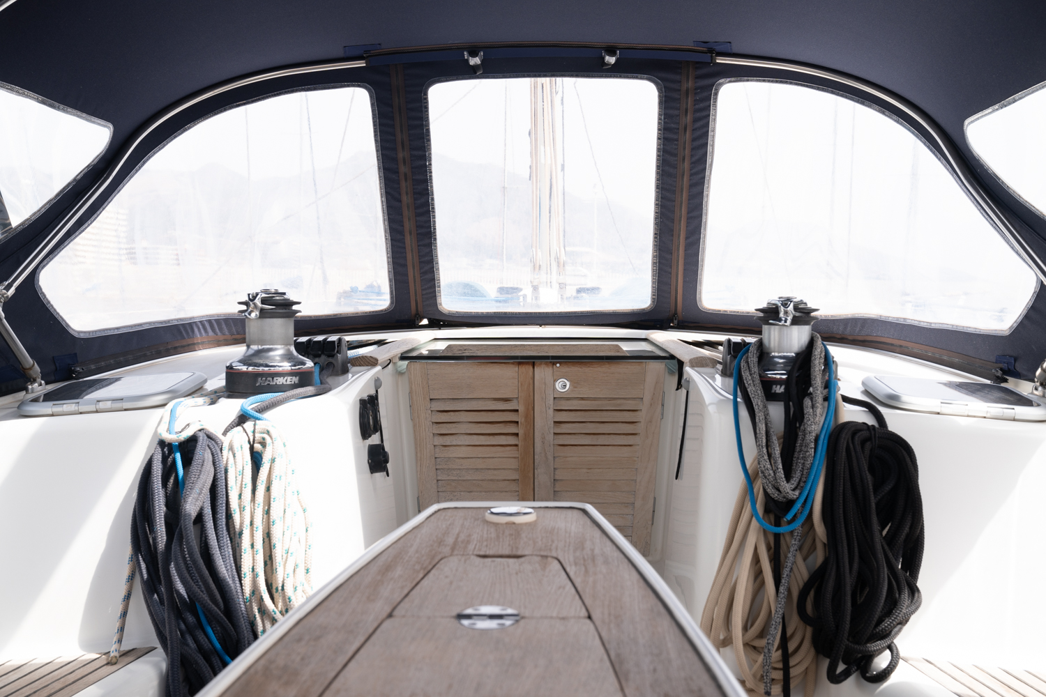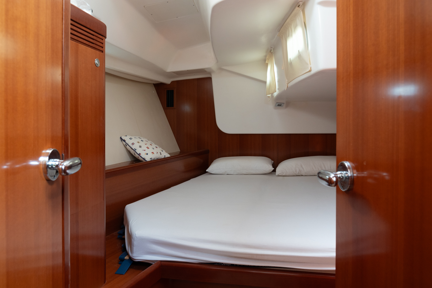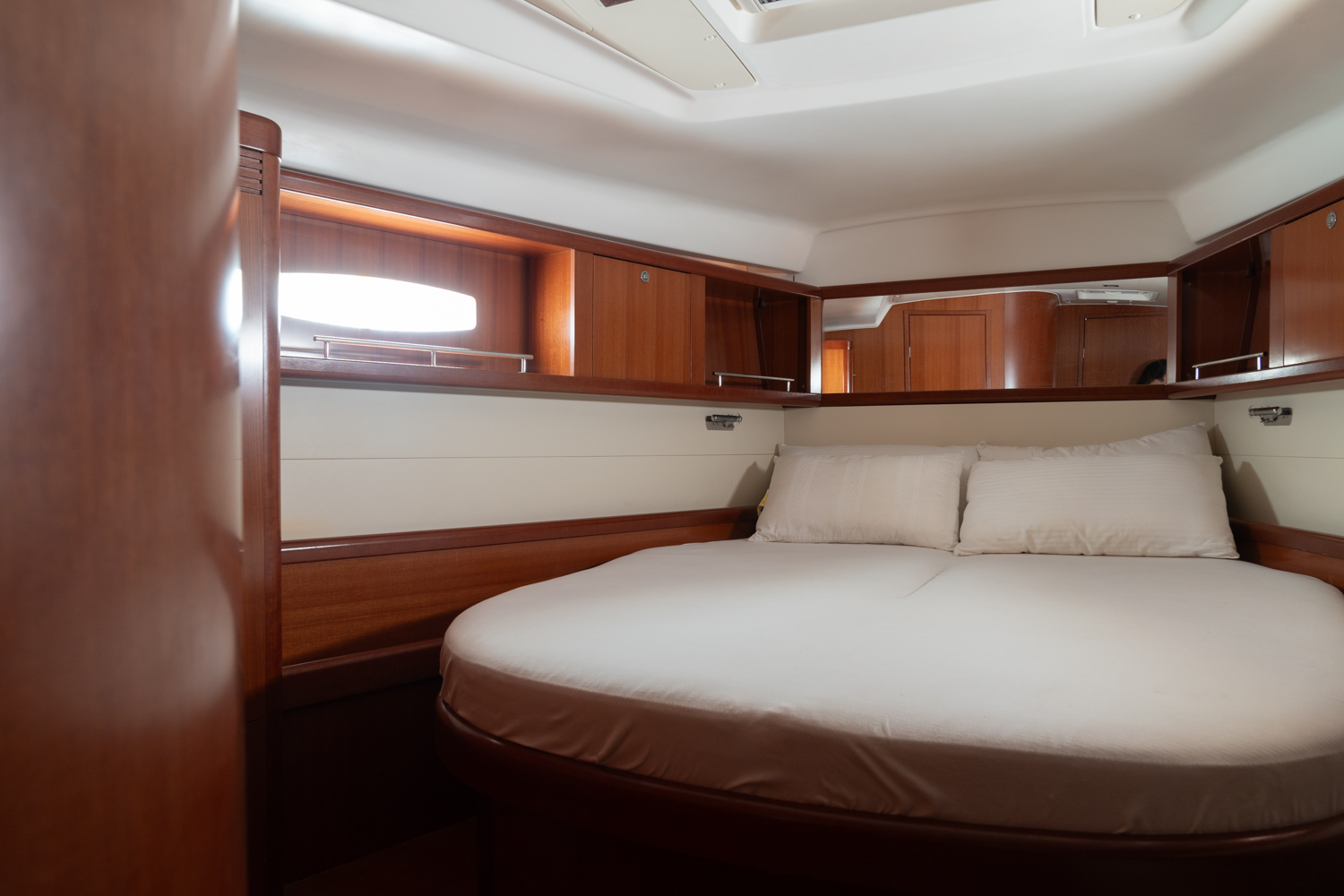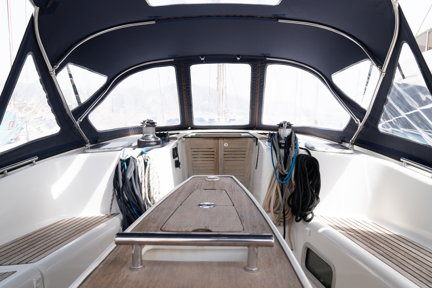 En navegación y maniobra, el barco cuenta con packs específicos de crucero y rendimiento, incluyendo electrónica Raymarine de última generación, piloto automático, instrumentación completa en cabina y mesa preparada para plotter, así como mejoras de prestaciones como mástil y velas de rendimiento y hélice Max-Prop de tres palas. The Pack Yacht Club añade seguridad y facilidad de uso con winche eléctrico, fondeo completo, defensas y equipamiento exterior pensado para disfrutar tanto en puerto como en navegación.