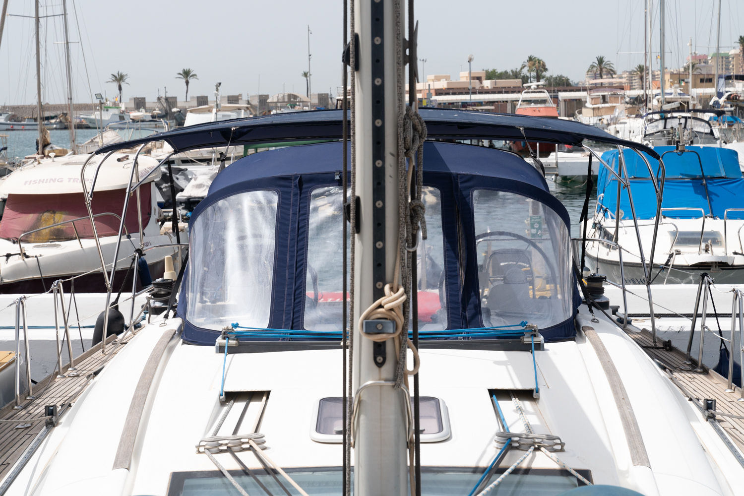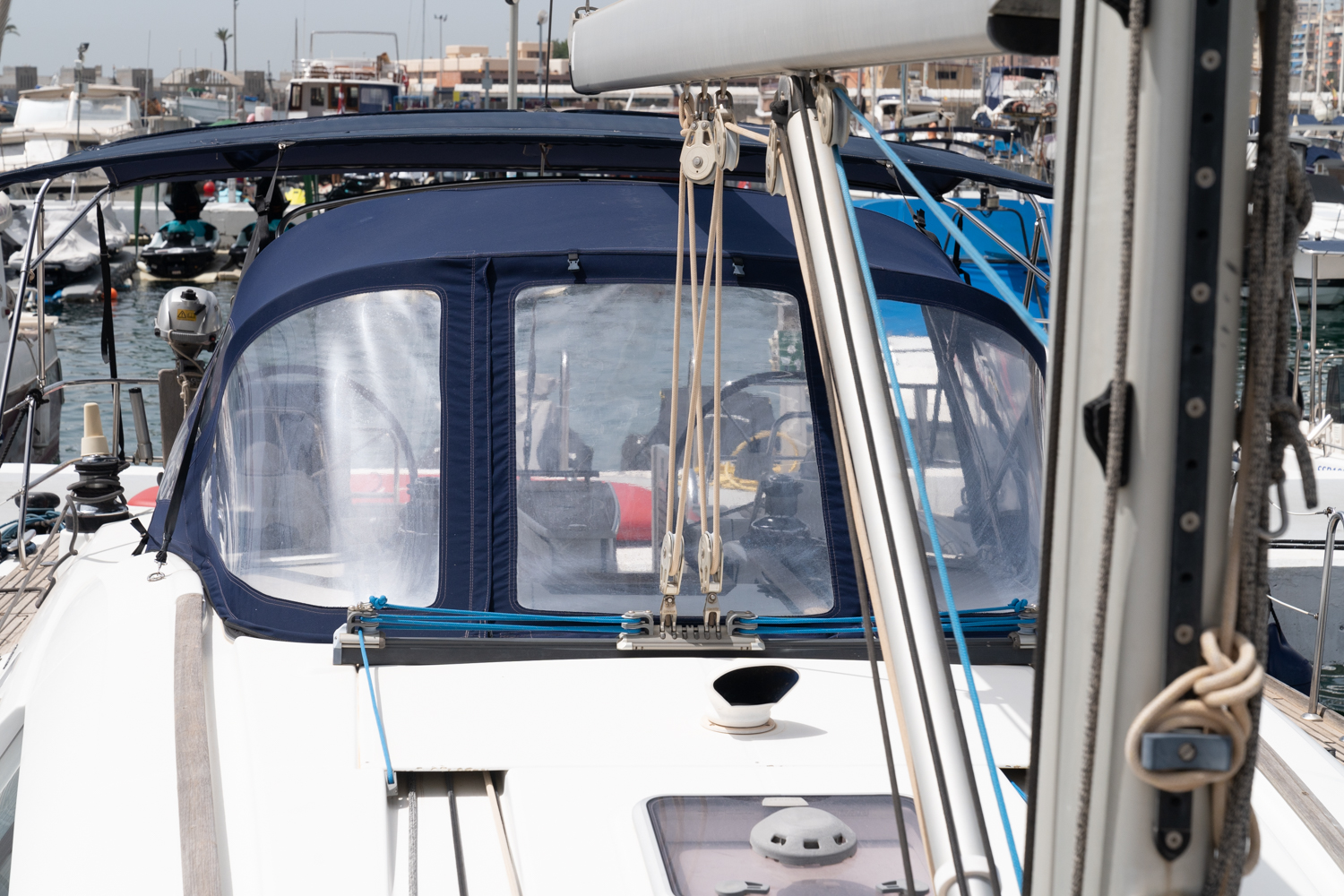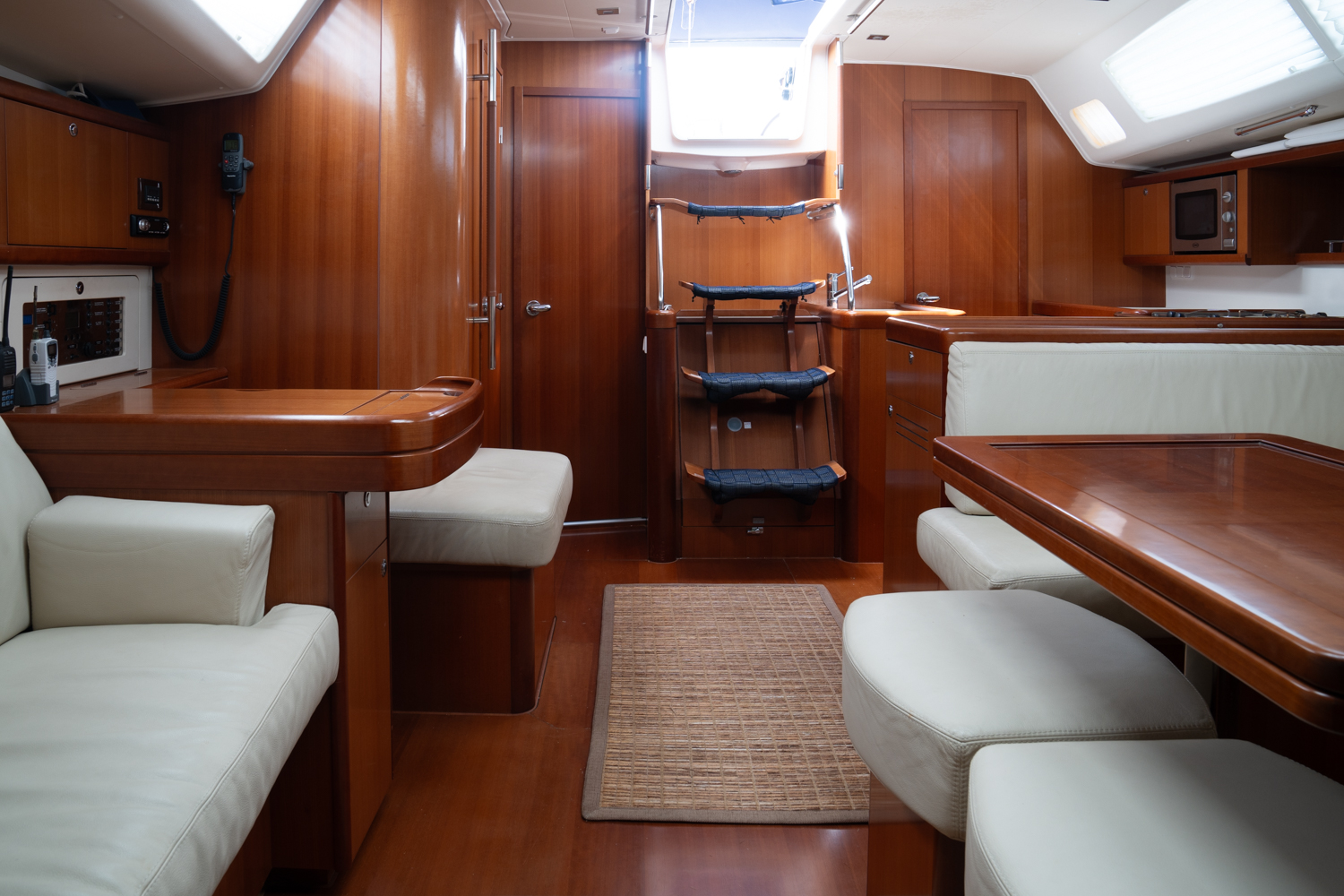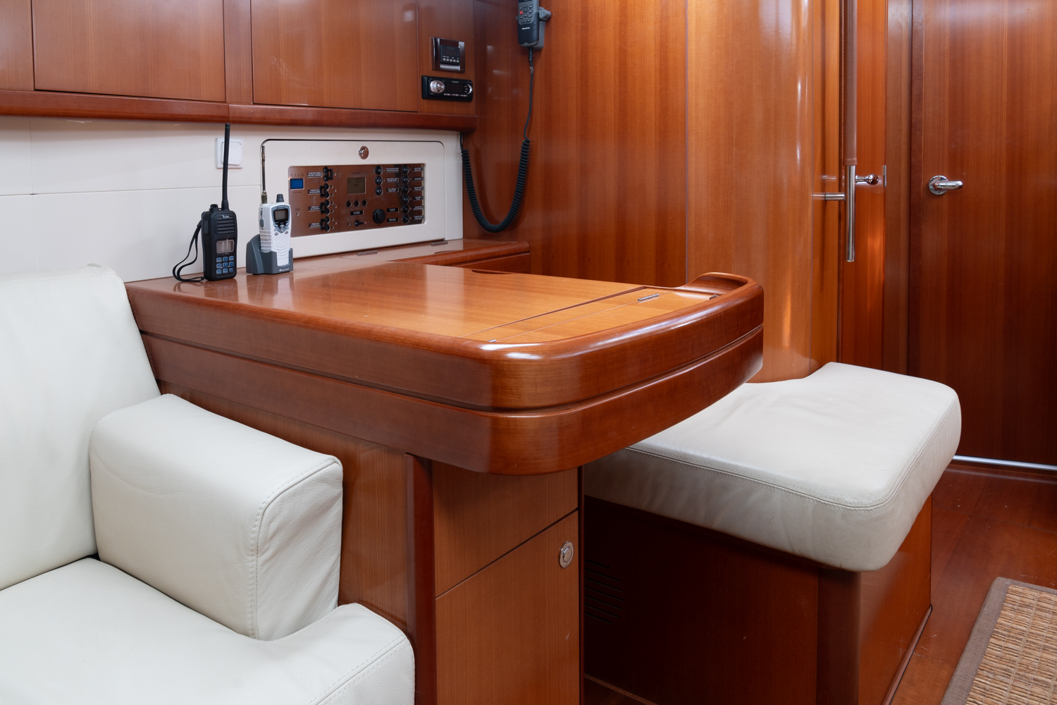 La construcción y los sistemas reflejan un diseño sólido y bien estudiado: casco y cubierta en GRP con refuerzos estructurales, cubierta tipo sándwich para aislamiento térmico y acústico, interiores con carpintería de alta calidad y una instalación eléctrica completa y protegida. El motor Yanmar con transmisión por eje, correctamente insonorizado y de fácil acceso para mantenimiento, junto con múltiples opciones adicionales (aire acondicionado, generator, desalinizador, calefacción, electrónica avanzada), convierten a esta embarcación en una unidad muy equilibrada, ideal tanto para crucero confortable como para un uso más exigente en navegación.