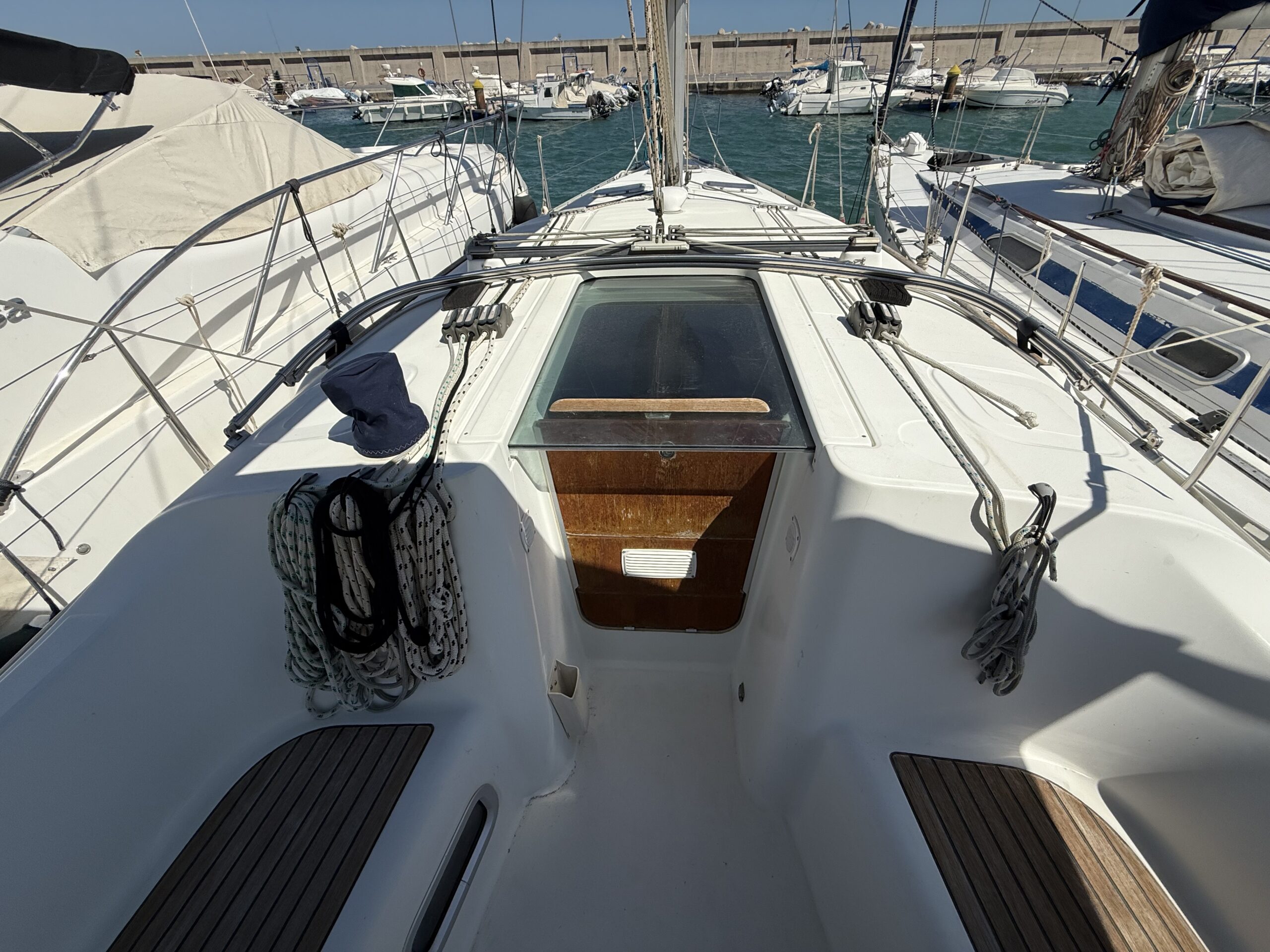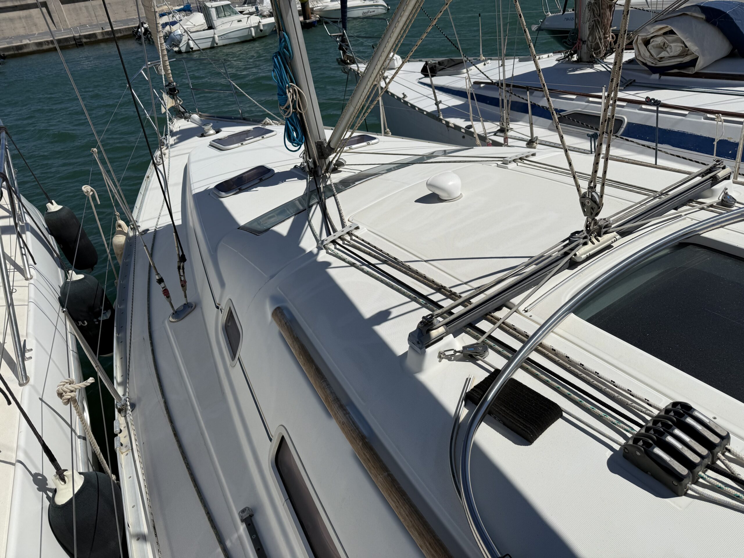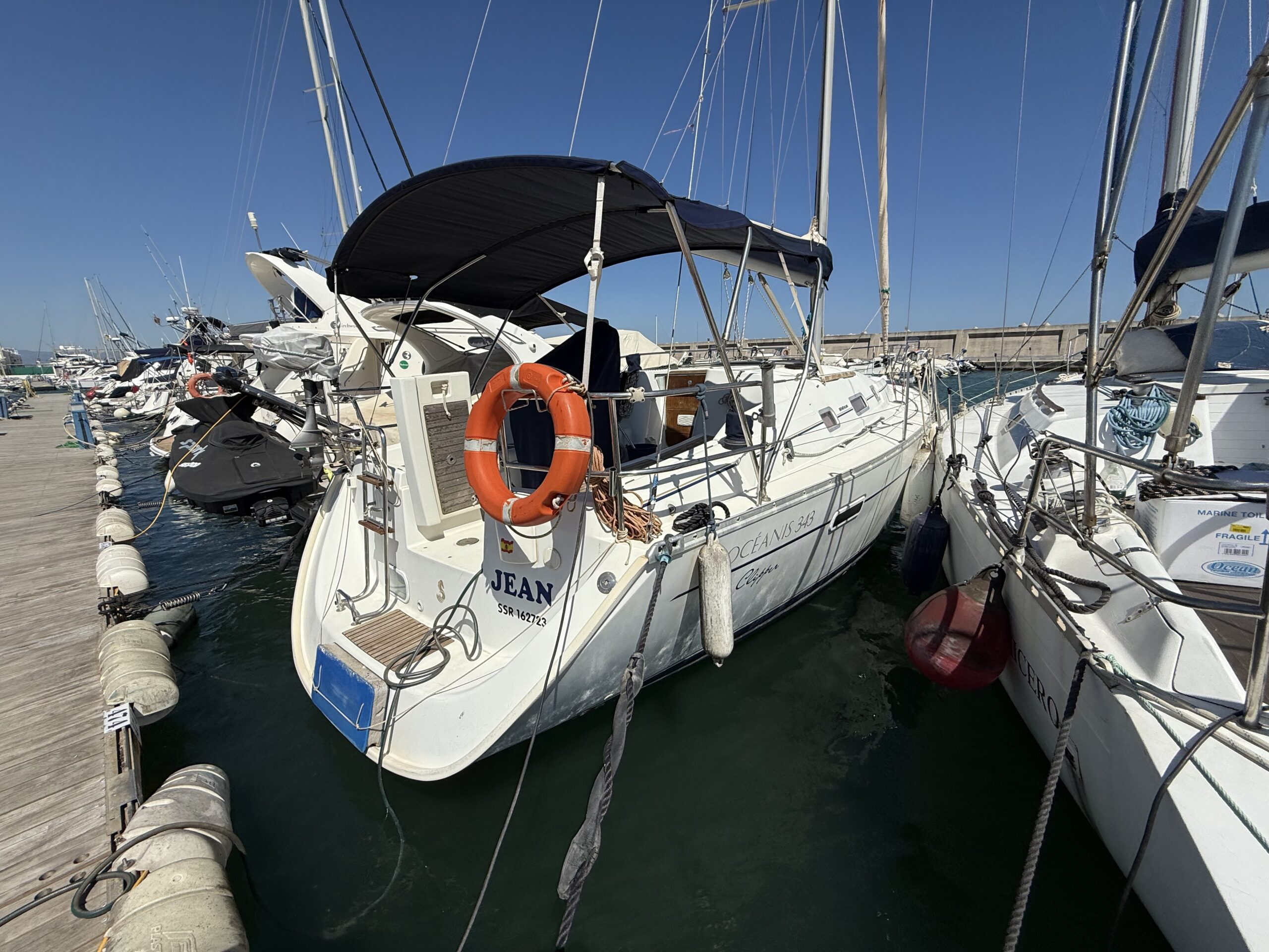 La Bénéteau Océanis 343 (2006) C'est un voilier reconnu pour son équilibre entre confort, sécurité et facilité d'utilisation, idéal aussi bien pour les croisières familiales que pour les marins à la recherche d'un bateau fiable et bien équipé. Sa conception offre une navigation stable et confortable, avec une coque efficace et une excellente maniabilité, même avec un équipage réduit.