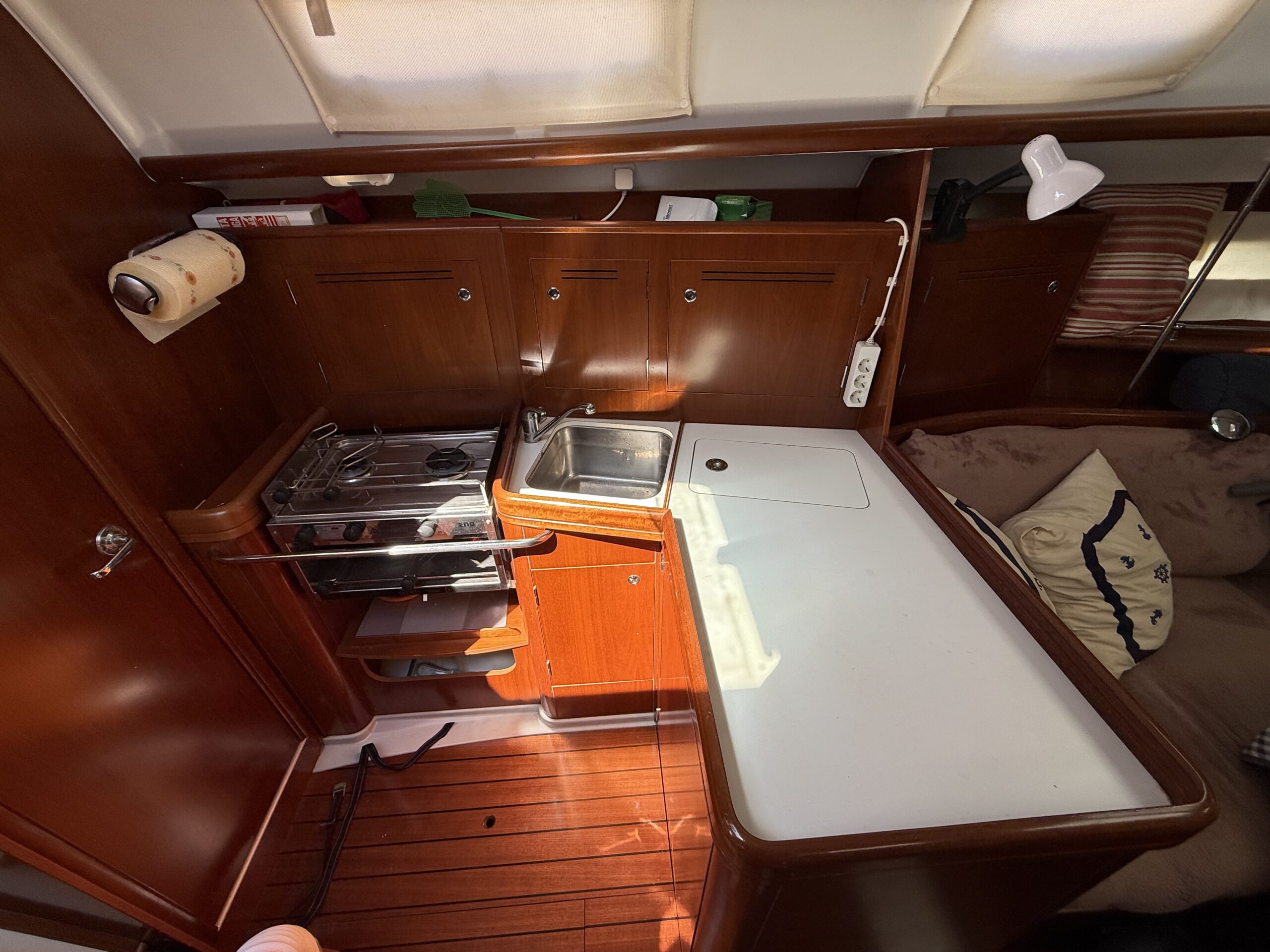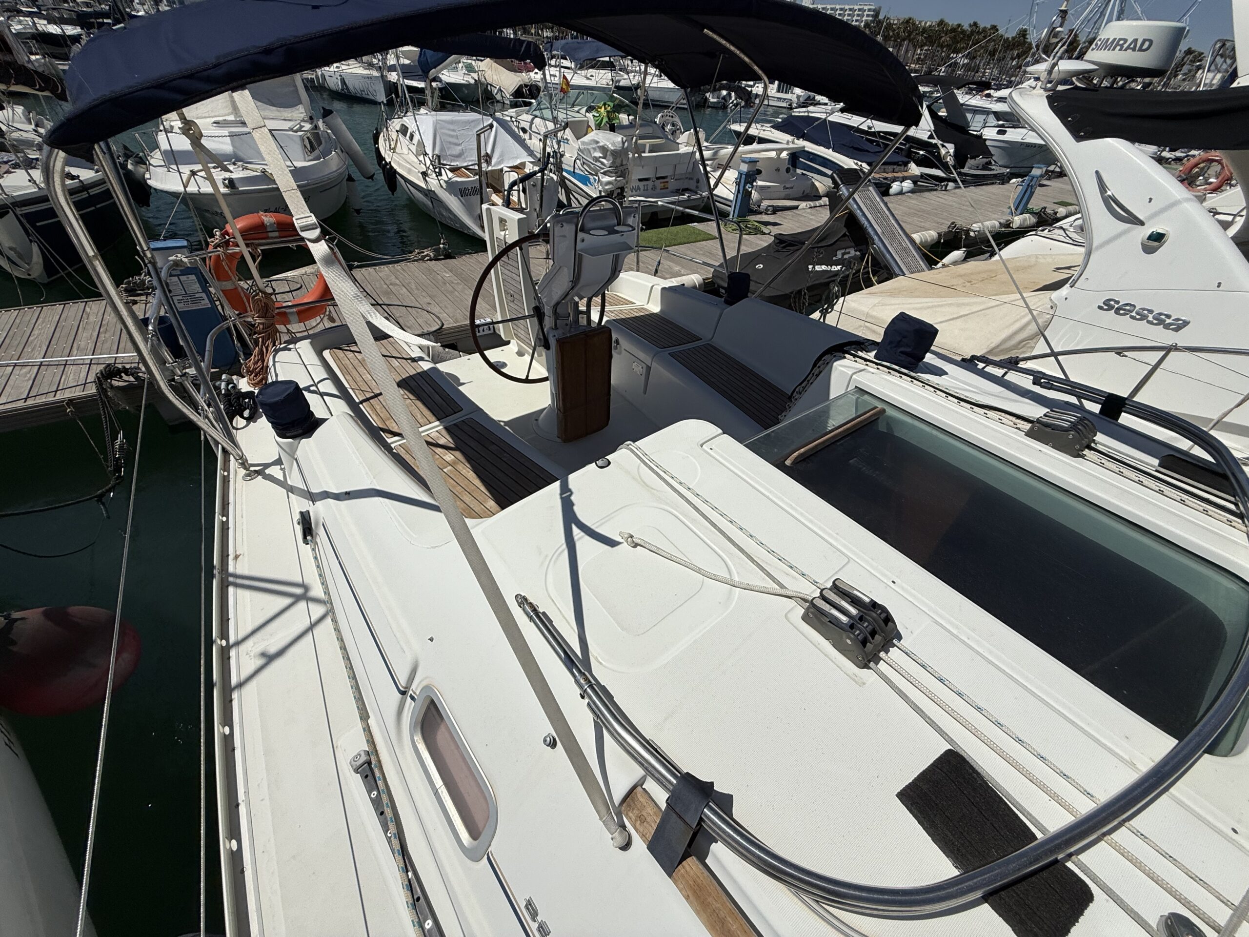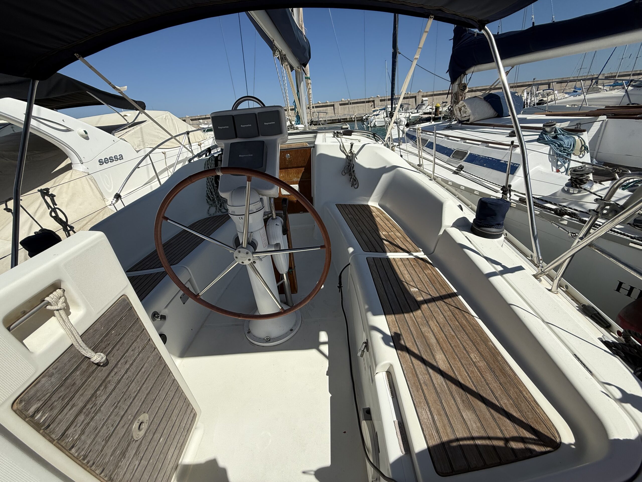La Bénéteau Océanis 343 (2006) C'est un voilier reconnu pour son équilibre entre confort, sécurité et facilité d'utilisation, idéal aussi bien pour les croisières familiales que pour les marins à la recherche d'un bateau fiable et bien équipé. Sa conception offre une navigation stable et confortable, avec une coque efficace et une excellente maniabilité, même avec un équipage réduit.