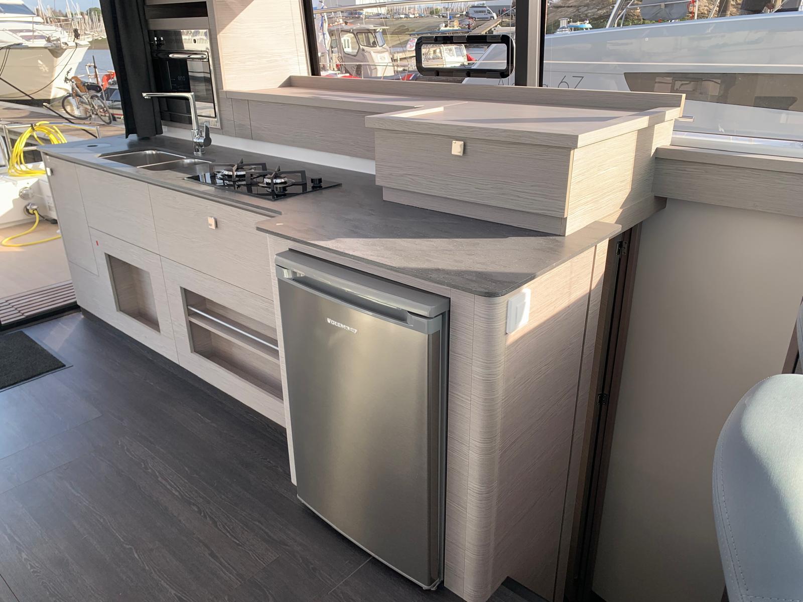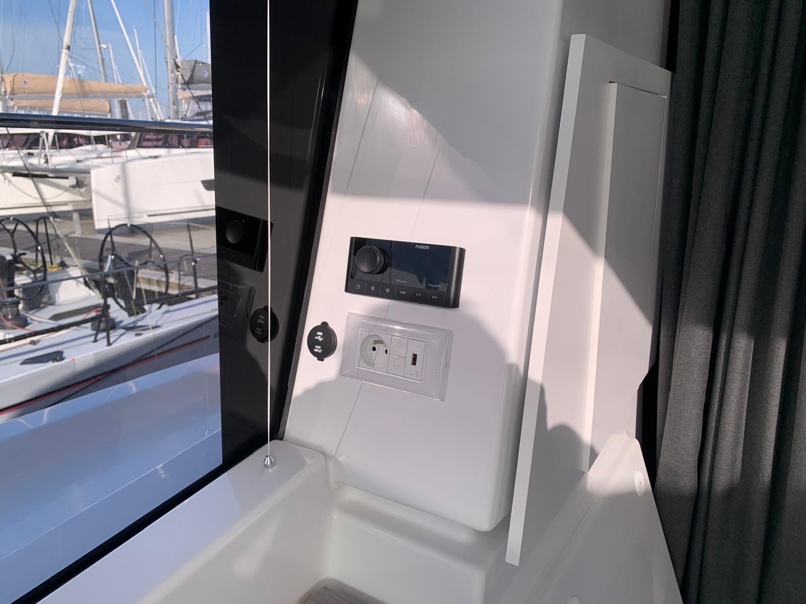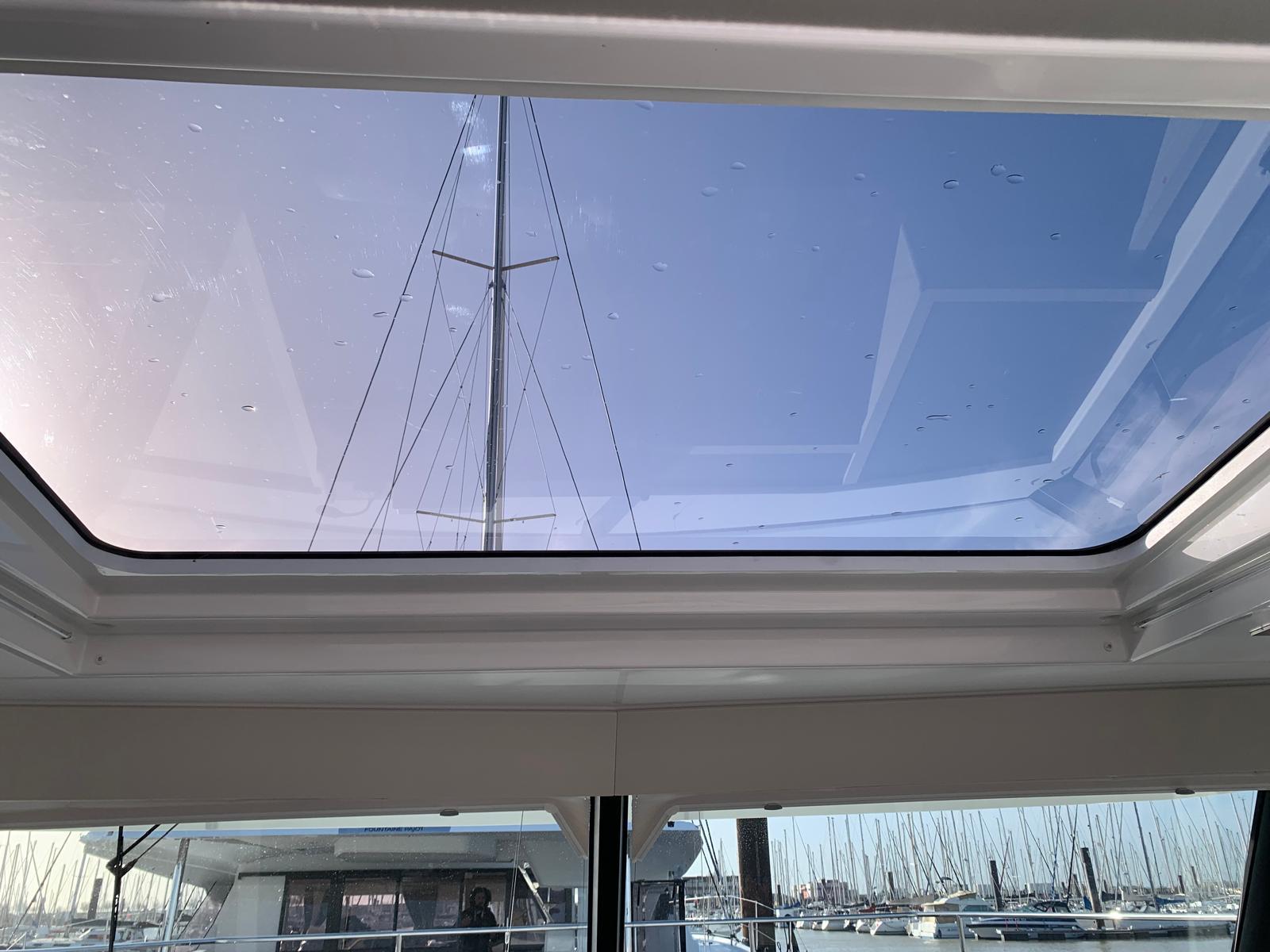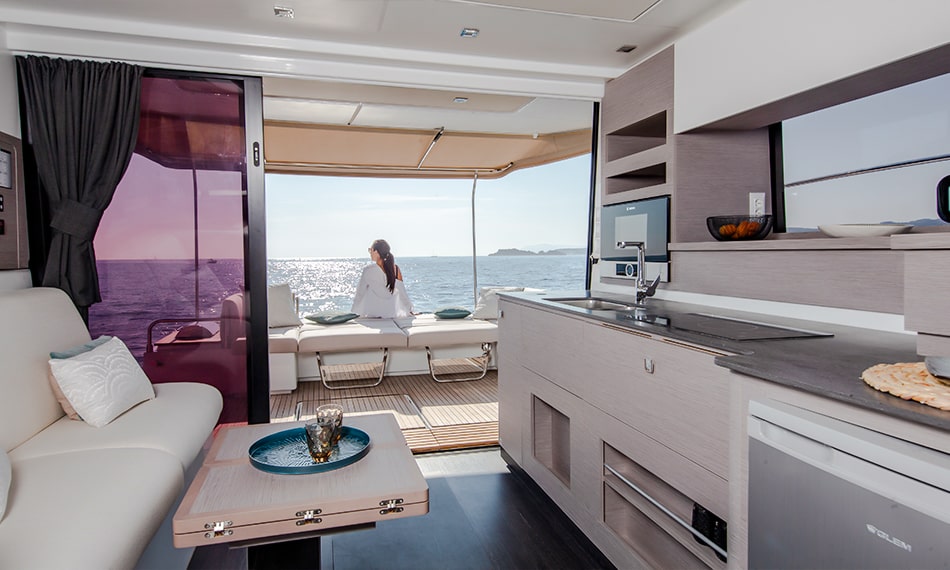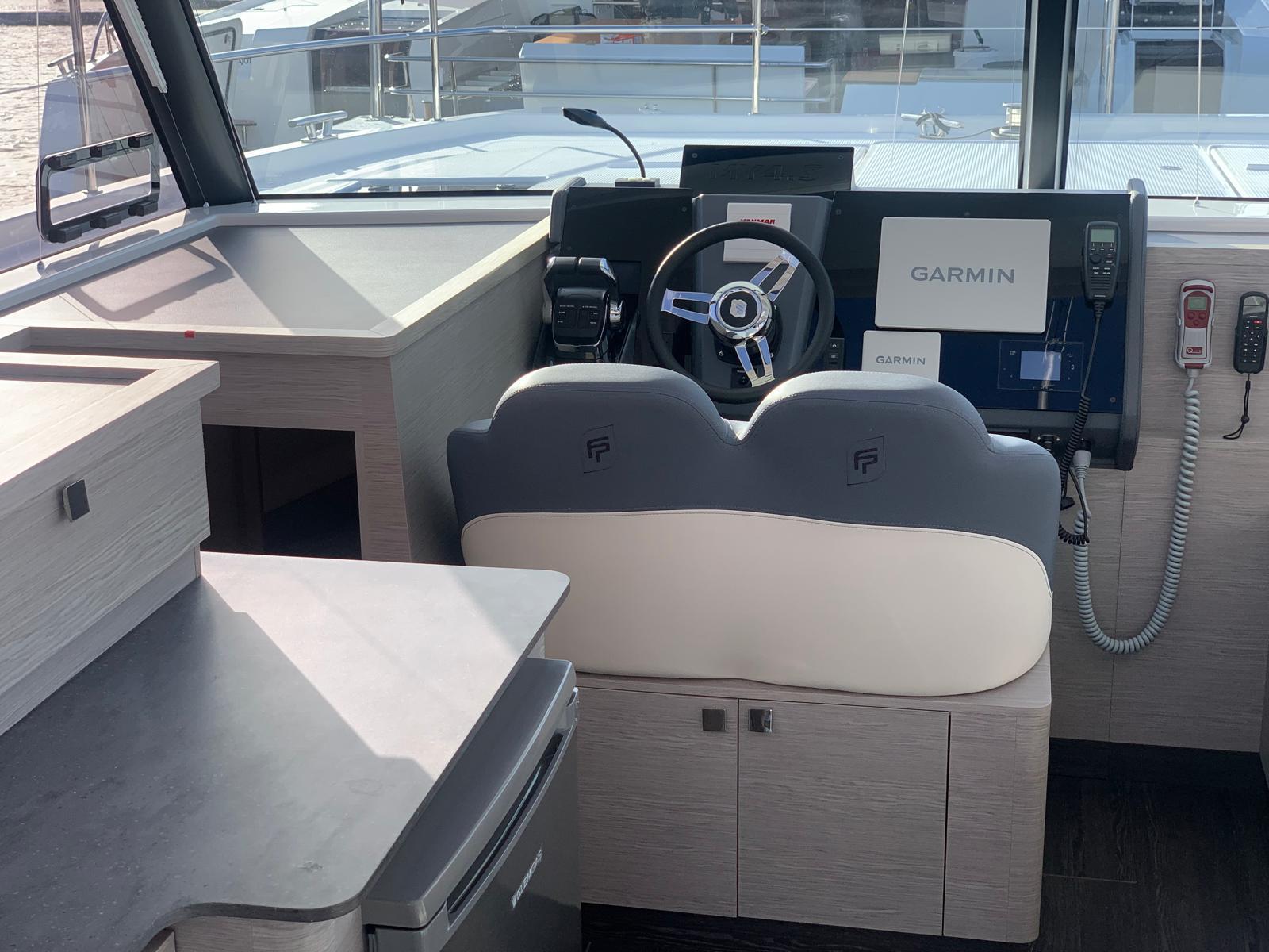 Abunda la luz natural gracias a las grandes superficies acristaladas, que crean un ambiente aireado y luminoso. La distribución interior es a la vez práctica Oui acogedora, creando una navegación fluida y agradable para los pasajeros. Cada detalle ha sido meticulosamente estudiado para aumentar la sensación de bienestar y confort, haciendo del motor yacht Fountaine Pajot la embarcación ideal para un viaje por mar excepcional. El salón y el puesto de timón, perfectamente equipados y repletos de luz, contribuyen a una experiencia de crucero en armonía con el mar.