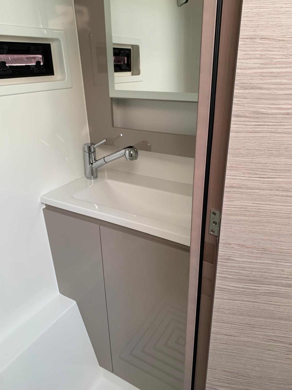 il est manœuvré grâce à un treuil électrique à double câblage et galets de guidage, que se extiende a todo lo largo del salón, está equipada con todo lo necesario para preparar comidas o cócteles a bordo, y se comunica perfectamente con la bañera.