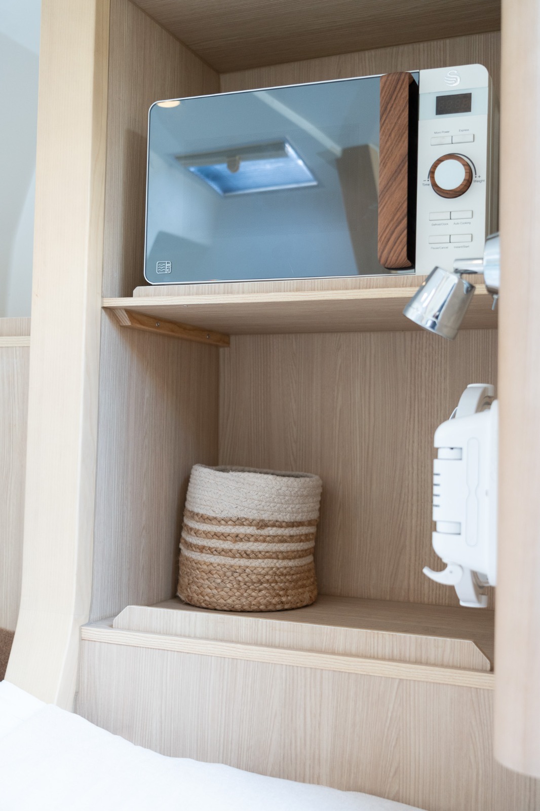 Este modelo presenta una línea de flotación más larga, lo que mejora la navegación, la comodidad y proporciona más espacio. La plataforma de baño fija incorpora una escalera de natación personalizada de primera categoría, completamente guardada, que facilita el acceso dentro y fuera del agua.