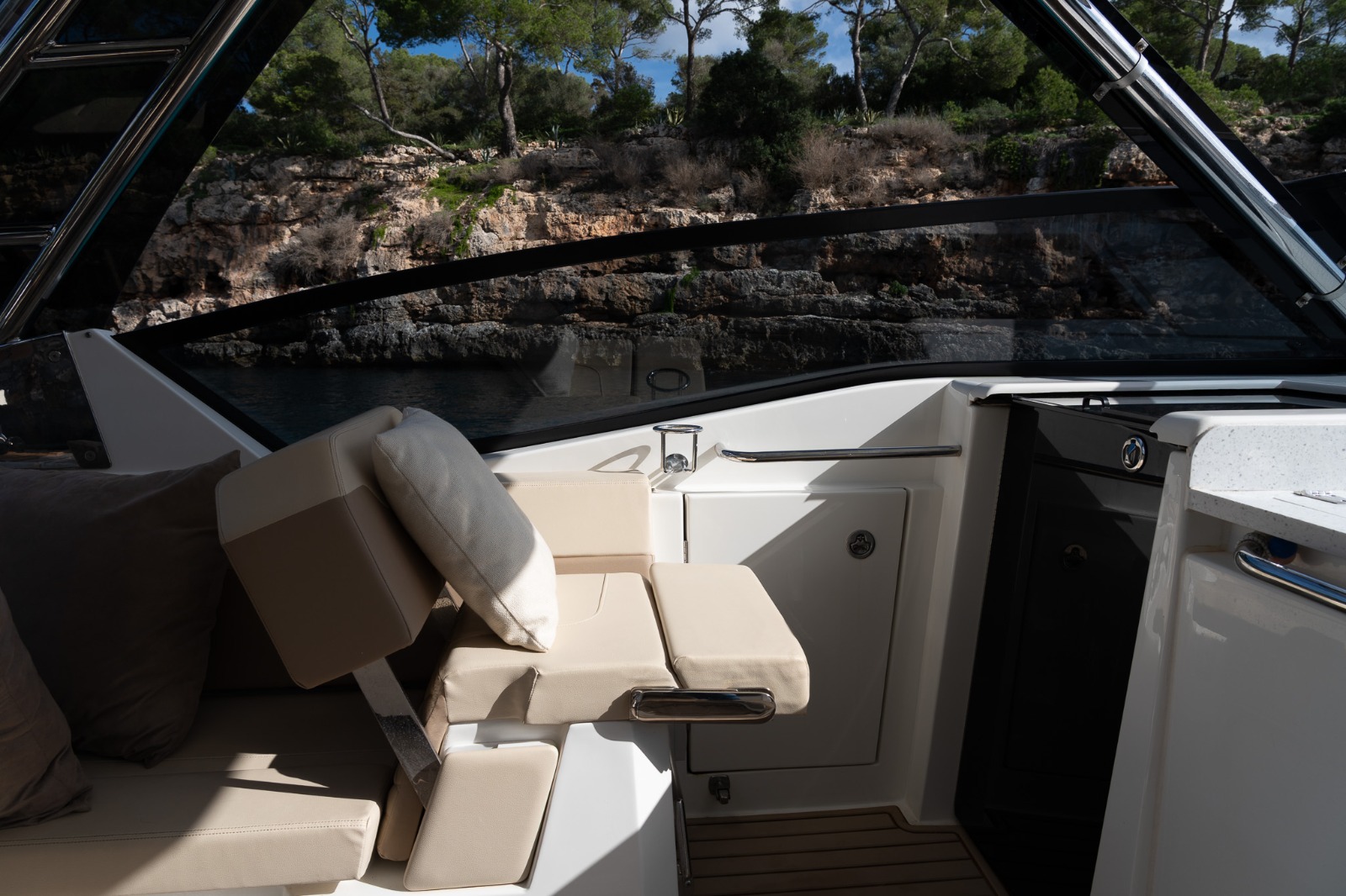 Gracias a los dos motores que lleva ( Mercury Verado V8 con 300hp cada uno) y al Joystick Piloting disfrutarás de una excelente Maniobrabilidad tanto navegando como en atraque y puertos. También está equipado con función de piloto automático (Autopilot) que mantiene automáticamente el rumbo seleccionado.